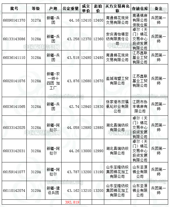 兵團(tuán)第一師成交392.819噸,占當(dāng)日該師上市資源量的2.37%。