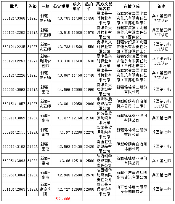 兵團第七師成交256.649噸,占當日該師上市資源量的4.21%。