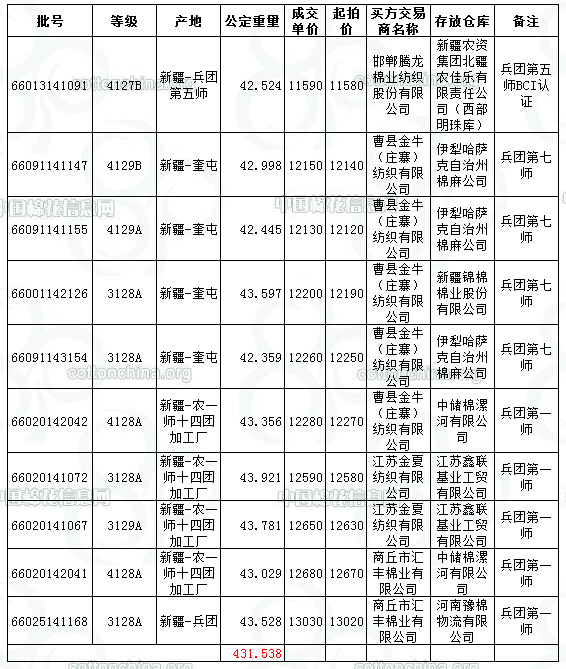 兵團第五師成交42.524噸,占當日該師上市資源量的0.96%。