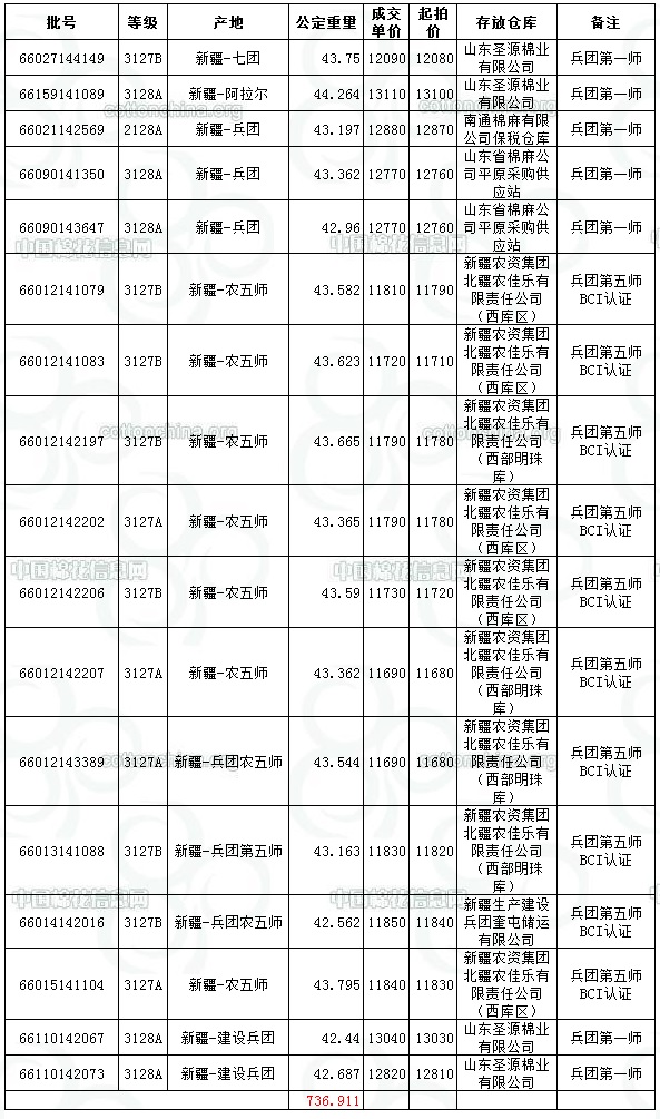 9月10日兵團(tuán)棉競(jìng)賣交易成交結(jié)果