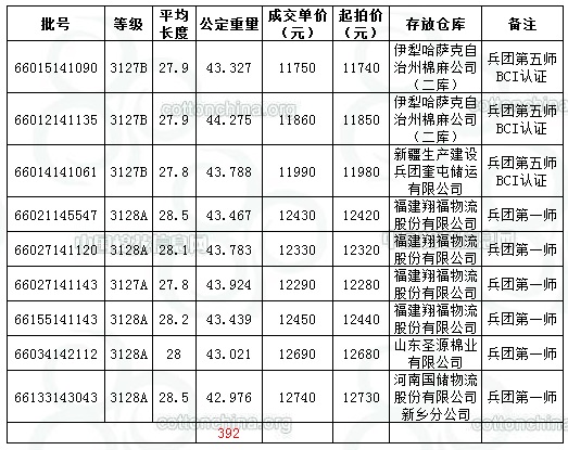 9月16日兵團棉競賣成交392噸 最低成交價11750元/噸