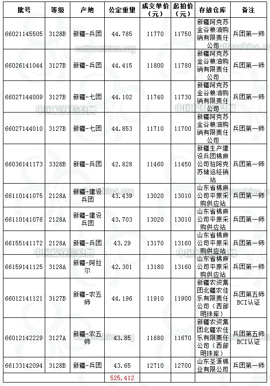 ——新疆生產(chǎn)建設兵團競賣專場成交結果