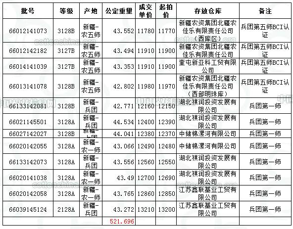 兵團第五師成交173.201噸,占當(dāng)日該師上市資源量的7.63%。