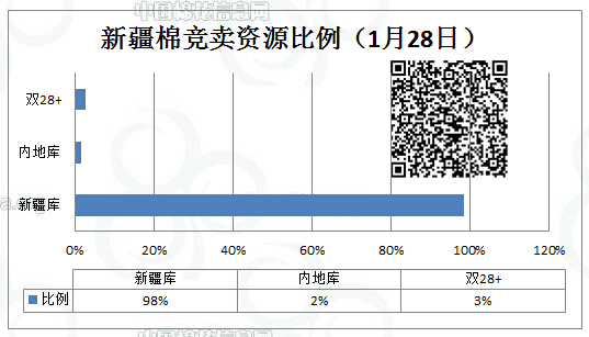 全國(guó)棉花交易市場(chǎng)定于1月28日上市新疆棉競(jìng)賣(mài)資源2764.024噸,最低起拍價(jià)9970元/噸。其中特價(jià)棉19批(不接受復(fù)檢)。新疆庫(kù)資源占2721.412噸,內(nèi)地庫(kù)資源占42.612噸。其中雙28+資源占75.989噸。