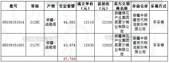 當(dāng)日成交資源為2015年度新花資源(手采棉)2批;均加價(jià)10元成交,買(mǎi)方為陜西某交易商。