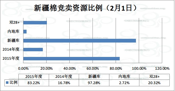 全國棉花交易市場定于2月1日上市新疆棉競賣資源3156.232噸,全部為手摘棉,最低起拍價10040元/噸。新疆庫資源占3070.328噸,內(nèi)地庫資源占85.904噸。其中雙28+資源占641.398噸。