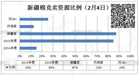 全國棉花交易市場定于2月4日上市新疆棉競賣資源4078.754噸,最低起拍價10040元/噸。其中特價棉14批(不接受復檢)。新疆庫資源占3561.362噸,內地庫資源占517.392噸。其中雙28+資源占1043.735噸。