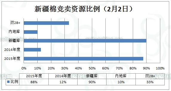 全國棉花交易市場定于2月2日上市新疆棉競賣資源4254.049噸,最低起拍價10040元/噸。其中特價棉14批(不接受復檢)。新疆庫資源占3819.948噸,內(nèi)地庫資源占434.101噸。其中雙28+資源占1410.532噸。
