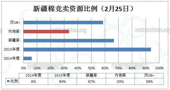 全國棉花交易市場定于2月25日上市新疆棉競賣資源3501.368噸,最低起拍價11800元/噸。新疆庫資源占2329.396噸,內(nèi)地庫資源占1171.972噸。其中雙28+資源占2055.727噸。