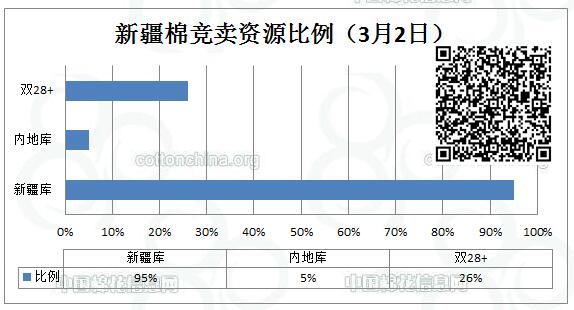 全國棉花交易市場定于3月2日上市新疆棉競賣資源3502.98噸,最低起拍價11700元/噸。新疆庫資源占3328.011噸,內地庫資源占174.964噸。其中雙28+資源占910.587噸。