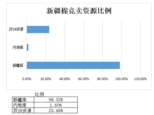全國(guó)棉花交易市場(chǎng)定于3月21日上市新疆棉競(jìng)賣(mài)資源2552.039噸,最低起拍價(jià)11350元/噸。其中雙28+資源占598.756噸,占比23.46%。