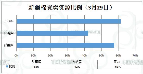 全國(guó)棉花交易市場(chǎng)定于3月29日上市新疆棉競(jìng)賣資源2265.93噸,最低起拍價(jià)11350元/噸,其中,新疆庫(kù)資源占1306.785噸,內(nèi)地庫(kù)資源占959.145噸,雙28+資源占1391.393噸。
