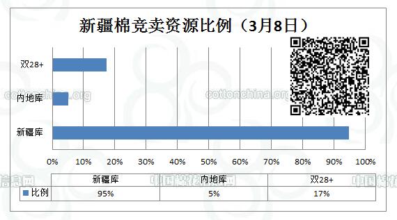 全國(guó)棉花交易市場(chǎng)定于3月8日上市新疆棉競(jìng)賣資源2523.85噸,最低起拍價(jià)9500元/噸。新疆庫(kù)資源占2392.575噸,內(nèi)地庫(kù)資源占131.27噸。其中雙28+資源占438.46噸。