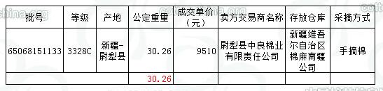 當(dāng)日成交資源為(手采棉)1批;加價(jià)10元成交,買方為陜西某交易商。