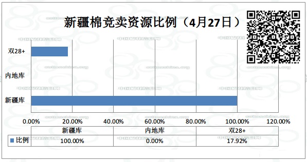 全國(guó)棉花交易市場(chǎng)定于4月27日上市新疆棉競(jìng)賣(mài)資源741.052噸,起拍價(jià)為12000元/噸,全部為新疆庫(kù)資源,雙28+資源占132.814噸。