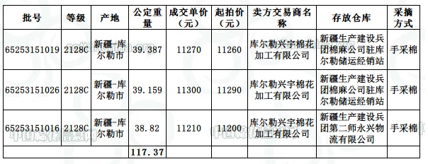 當(dāng)日成交資源為2015年度手采棉3批;均加價10元成交,買方為河南某交易商。