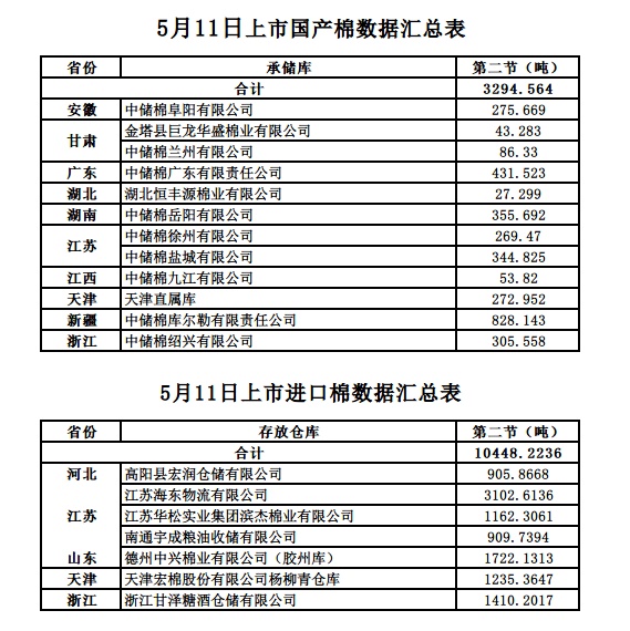5月11日第二節(jié)交易國(guó)產(chǎn)棉明細(xì)數(shù)據(jù)