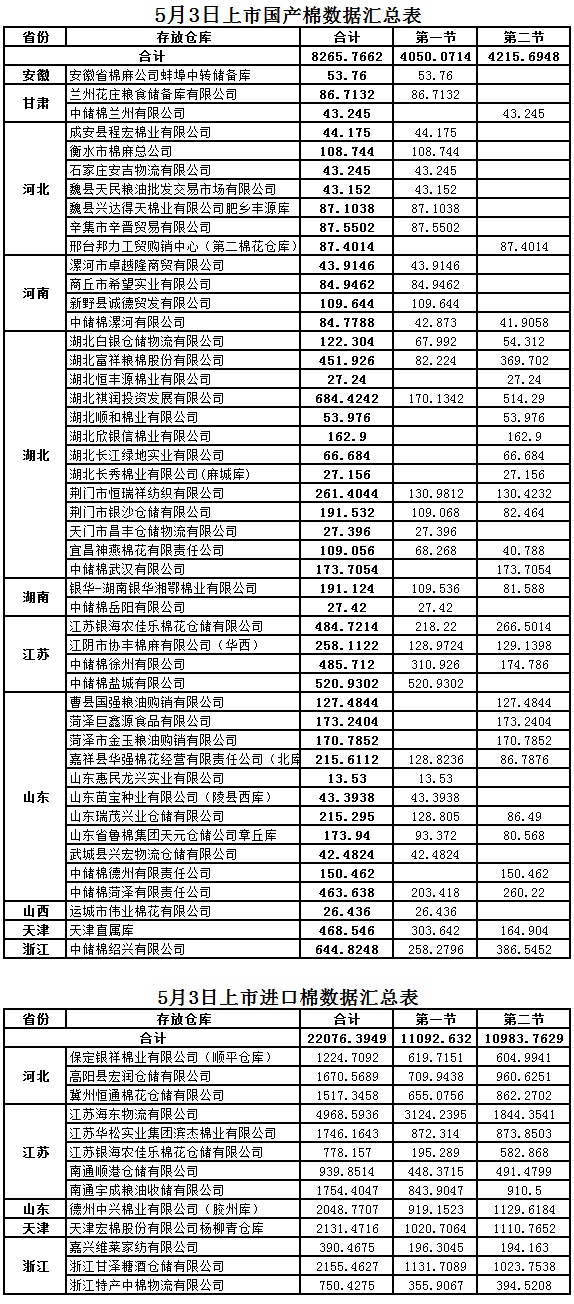 5月3日第一節(jié)交易國產(chǎn)棉明細(xì)數(shù)據(jù)