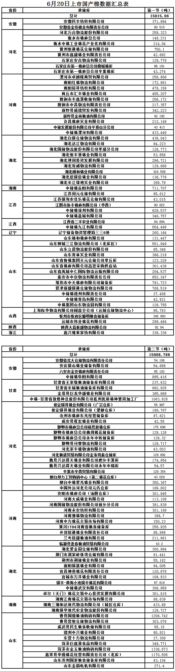 6月20日第二節(jié)交易國(guó)產(chǎn)棉明細(xì)數(shù)據(jù)