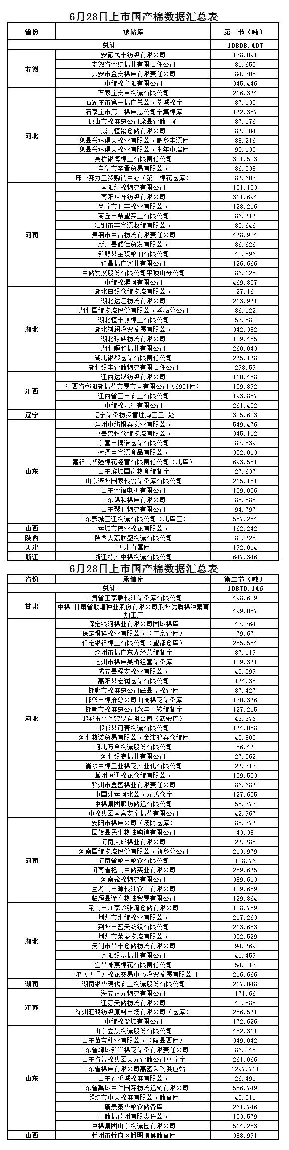 6月28日兩節(jié)共計輪出儲備棉21678.553噸。第一節(jié)銷售儲備棉10808.4070噸,其中國產(chǎn)棉10808.4070噸、進(jìn)口棉0噸。第二節(jié)銷售儲備棉10870.1460噸,其中國產(chǎn)棉10870.1460噸、進(jìn)口棉0噸。