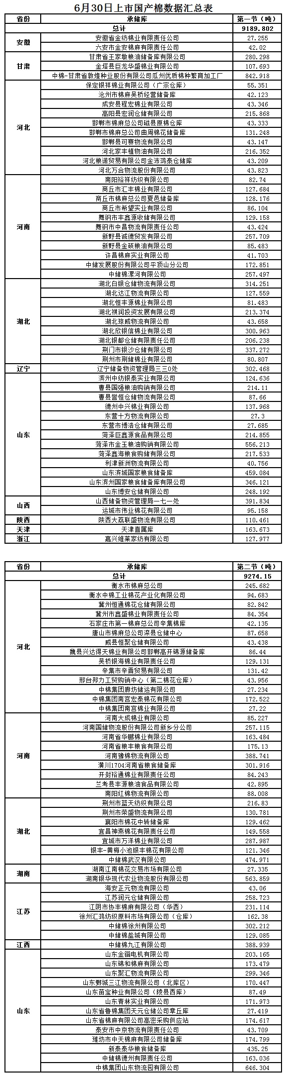 6月30日兩節(jié)共計輪出儲備棉18463.952噸。第一節(jié)計劃輪出儲備棉9189.8020噸,其中國產(chǎn)棉9189.8020噸、進(jìn)口棉0噸。第二節(jié)計劃輪出儲備棉9274.1500噸,其中國產(chǎn)棉9274.1500噸、進(jìn)口棉0噸。