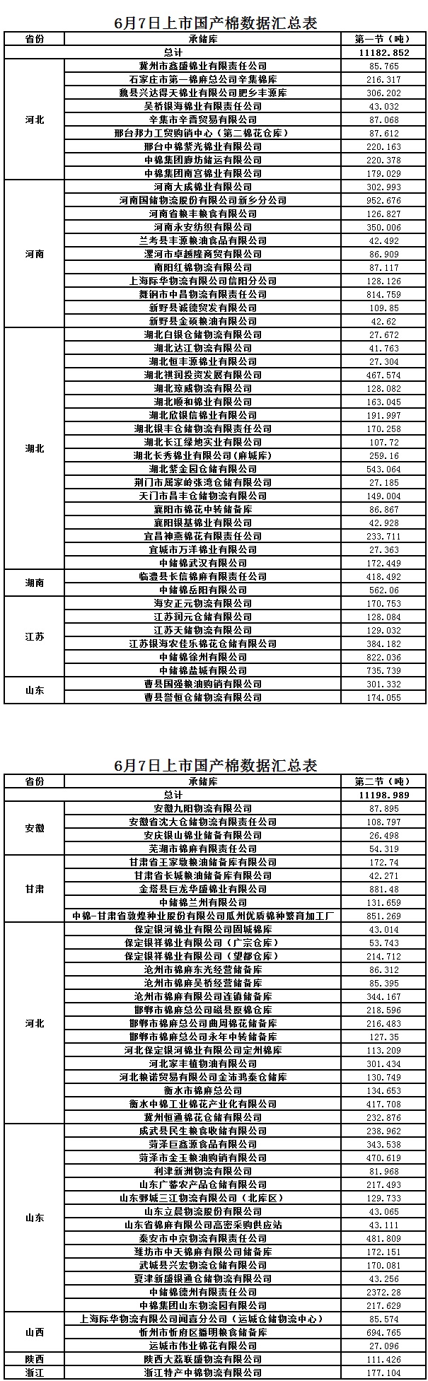 6月7日兩節(jié)共計(jì)銷售儲(chǔ)備棉22381.841噸。第一節(jié)銷售儲(chǔ)備棉11182.852噸,其中國(guó)產(chǎn)棉11182.852噸、進(jìn)口棉0噸。第二節(jié)銷售儲(chǔ)備棉11198.989噸,其中國(guó)產(chǎn)棉11198.989噸、進(jìn)口棉0噸。