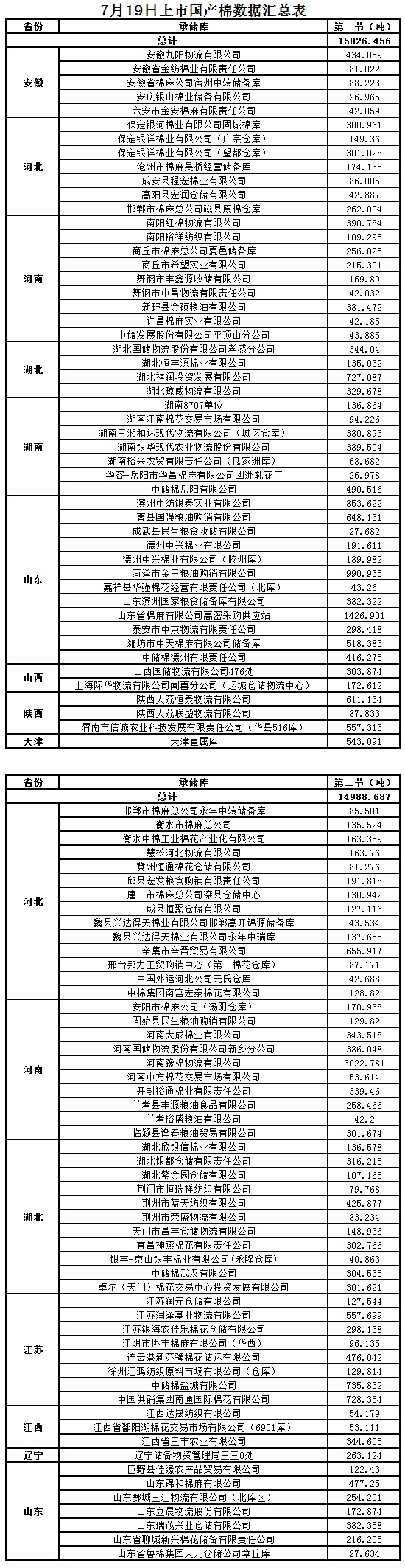 7月19日第二節(jié)交易國產(chǎn)棉明細數(shù)據(jù)