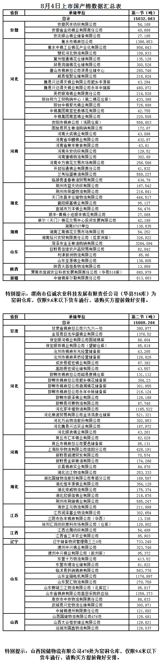 8月4日兩節(jié)共計輪出儲備棉30041.327噸。第一節(jié)銷售儲備棉15032.0630噸,其中國產(chǎn)棉15032.0630噸、進(jìn)口棉0噸。第二節(jié)銷售儲備棉15009.2640噸,其中國產(chǎn)棉15009.2640噸、進(jìn)口棉0噸。