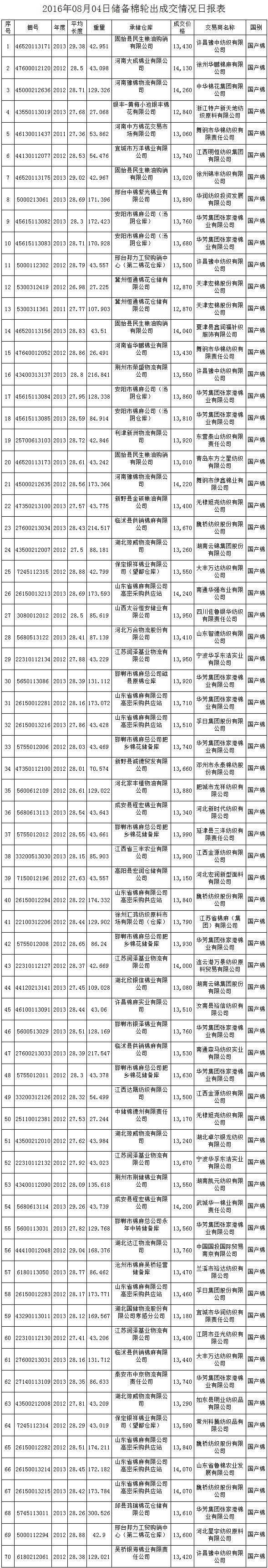 8月4日儲(chǔ)備棉輪出資源30041.327噸,實(shí)際成交6823.798噸,成交率22.71%,成交均價(jià)13676元/噸(上一日成交均價(jià)13743元/噸)。當(dāng)日最高價(jià)14260元/噸,最低價(jià)12840元/噸。據(jù)中國(guó)棉花信息網(wǎng)統(tǒng)計(jì),截至8月4日,儲(chǔ)備棉輪出累計(jì)成交1694997.51噸,進(jìn)口棉成交總量:296306.06噸,成交率:98.16%。國(guó)產(chǎn)棉成交總量:1398691.45噸,成交率:95.09%。