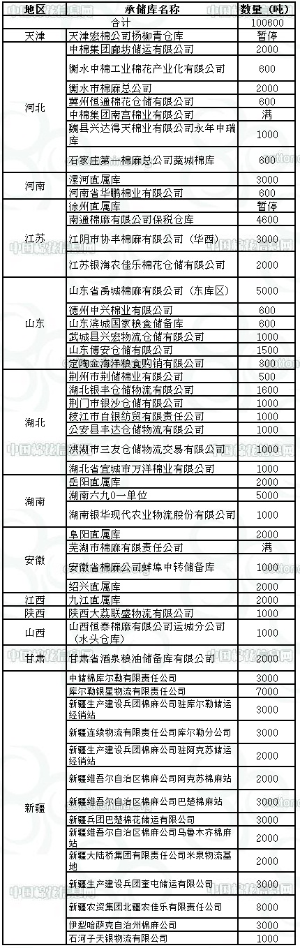 錦橋紡織網(wǎng)—資訊頻道> 棉花信息> 收儲>正文 10月11日收儲預(yù)告:計劃收儲100600噸