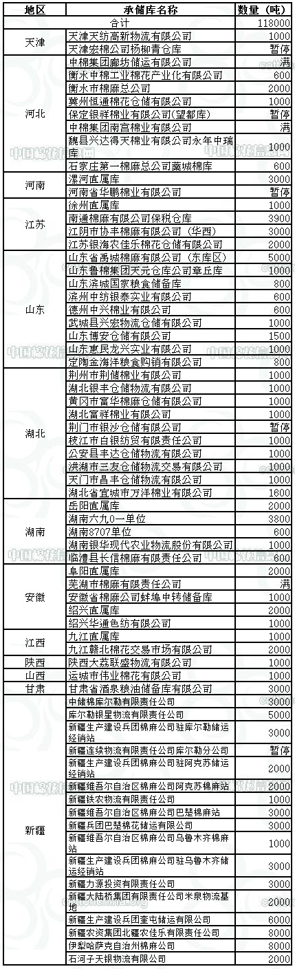 錦橋紡織網(wǎng)—資訊頻道> 棉花信息> 收儲>正文 10月22日收儲預(yù)告:計劃收儲118000噸