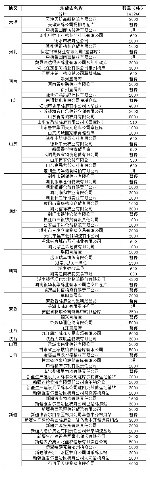 錦橋紡織網(wǎng)—資訊頻道> 棉花信息> 收儲>正文 10月31日收儲預告:計劃收儲141240噸