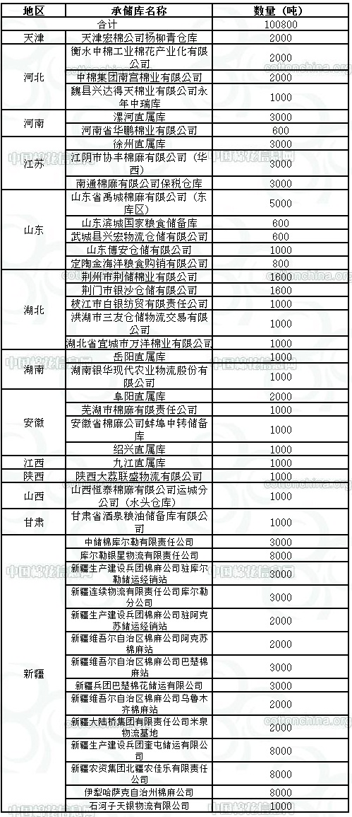 錦橋紡織網(wǎng)—資訊頻道> 棉花信息> 收儲>正文 10月8日收儲預(yù)告:計劃收儲100800噸