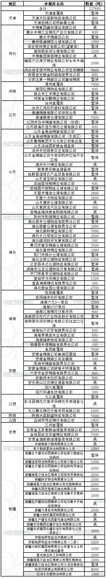 定于11月27日在以下指定倉庫收儲2012年度棉花117680噸。哈密雙銀棉業(yè)有限責任公司僅限東疆棉花企業(yè)競拍,其他企業(yè)競拍無效。