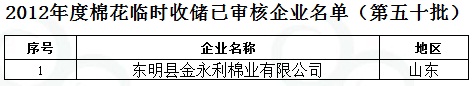2012年度棉花臨時(shí)收儲(chǔ)已審核企業(yè)名單(第五十批)