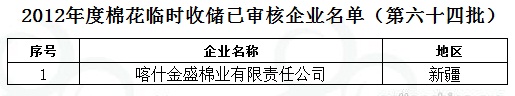2012年度棉花臨時(shí)收儲(chǔ)已審核企業(yè)名單(第六十四批)