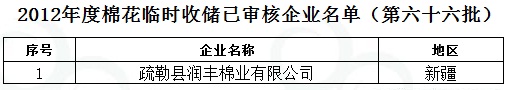 2012年度棉花臨時(shí)收儲(chǔ)已審核企業(yè)名單(第六十六批)