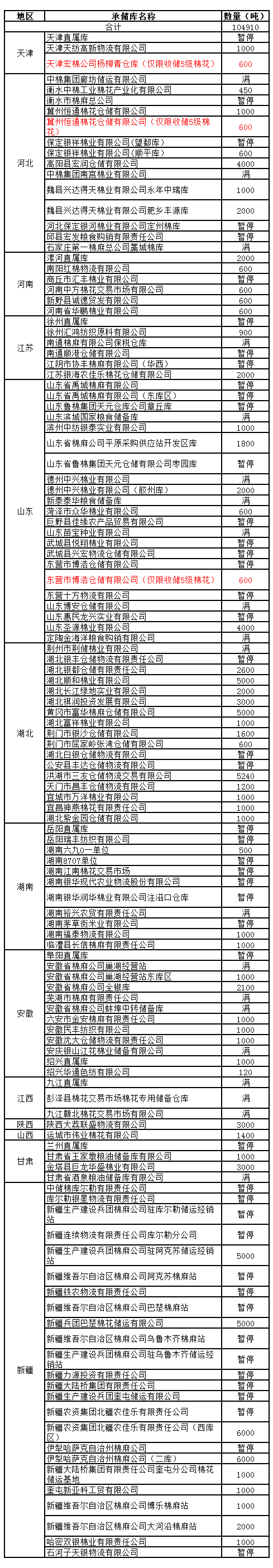 定于12月26日在以下指定倉(cāng)庫(kù)收儲(chǔ)2012年度棉花104910噸。哈密雙銀棉業(yè)有限責(zé)任公司僅限東疆棉花企業(yè)競(jìng)拍,新疆維吾爾自治區(qū)棉麻公司博樂棉麻站僅限于博樂地區(qū)棉花企業(yè)競(jìng)拍,以上庫(kù)點(diǎn)其他地區(qū)企業(yè)競(jìng)拍將按違約處理。