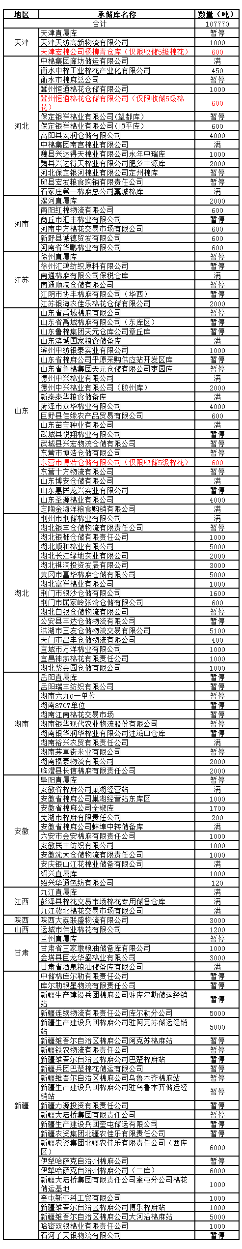 定于12月28日在以下指定倉(cāng)庫(kù)收儲(chǔ)2012年度棉花107770噸。哈密雙銀棉業(yè)有限責(zé)任公司僅限東疆棉花企業(yè)競(jìng)拍,新疆維吾爾自治區(qū)棉麻公司博樂棉麻站僅限于博樂地區(qū)棉花企業(yè)競(jìng)拍,以上庫(kù)點(diǎn)其他地區(qū)企業(yè)競(jìng)拍將按違約處理。