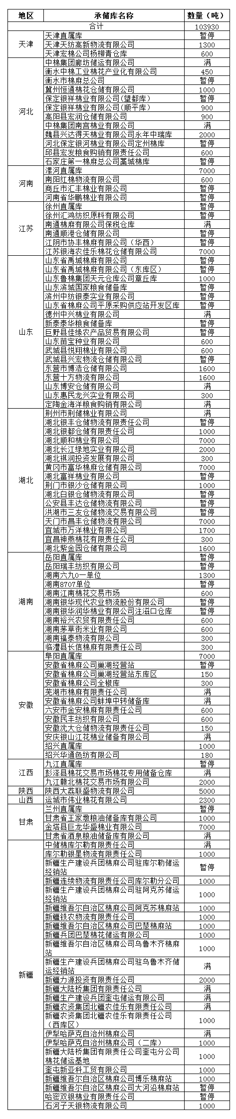 錦橋紡織網(wǎng)—資訊頻道> 棉花信息> 收儲>正文 12月3日收儲預(yù)告:計劃收儲103930噸