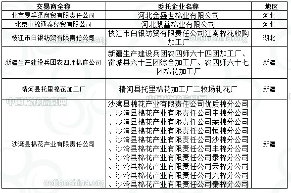 2012年度棉花臨時(shí)收儲(chǔ)第二批已審核租賃、委托加工企業(yè)來自全國(guó)3個(gè)主產(chǎn)區(qū)。詳細(xì)名單如下: