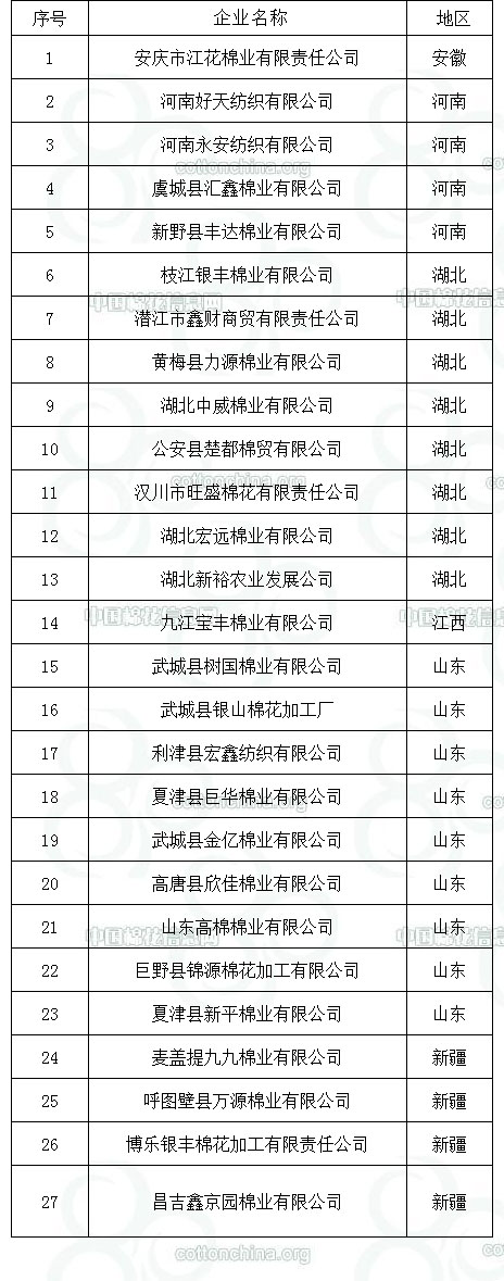 2012年度棉花臨時(shí)收儲(chǔ)已審核企業(yè)名單(第四批)