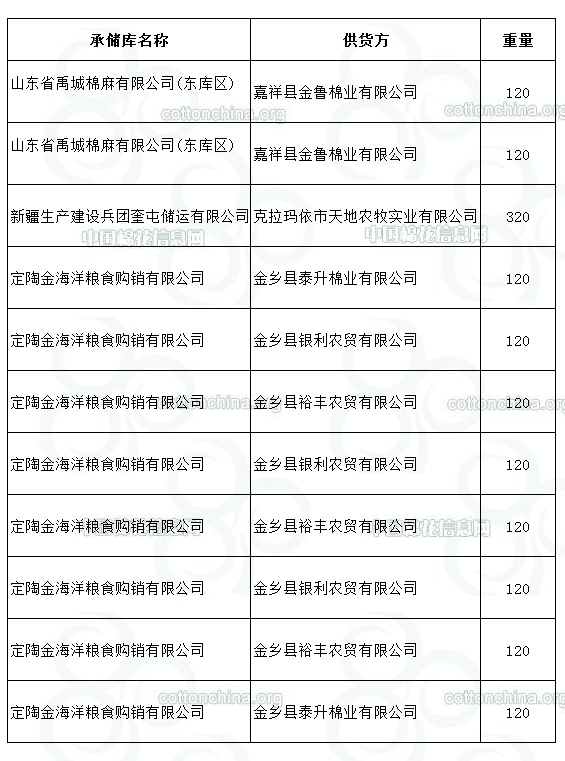 錦橋紡織網(wǎng)—資訊頻道> 棉花信息> 收儲>正文 9月14日收儲成交結(jié)果