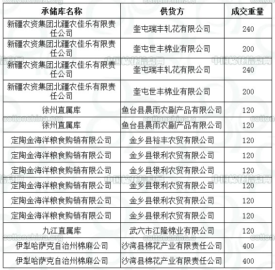 錦橋紡織網(wǎng)—資訊頻道> 棉花信息> 收儲>正文 9月17日收儲成交結(jié)果
