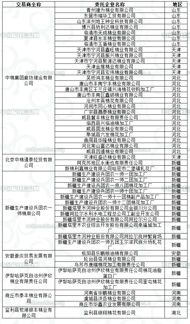 2012年度棉花臨時(shí)收儲已審核租賃、委托加工企業(yè)名單(第七批)