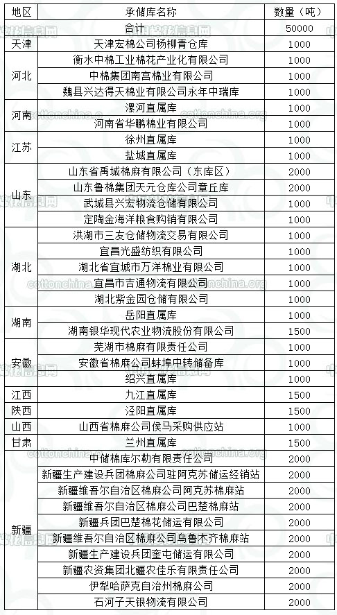 錦橋紡織網(wǎng)—資訊頻道> 棉花信息> 收儲(chǔ)>正文 9月20日收儲(chǔ)預(yù)告:計(jì)劃收儲(chǔ)50000噸