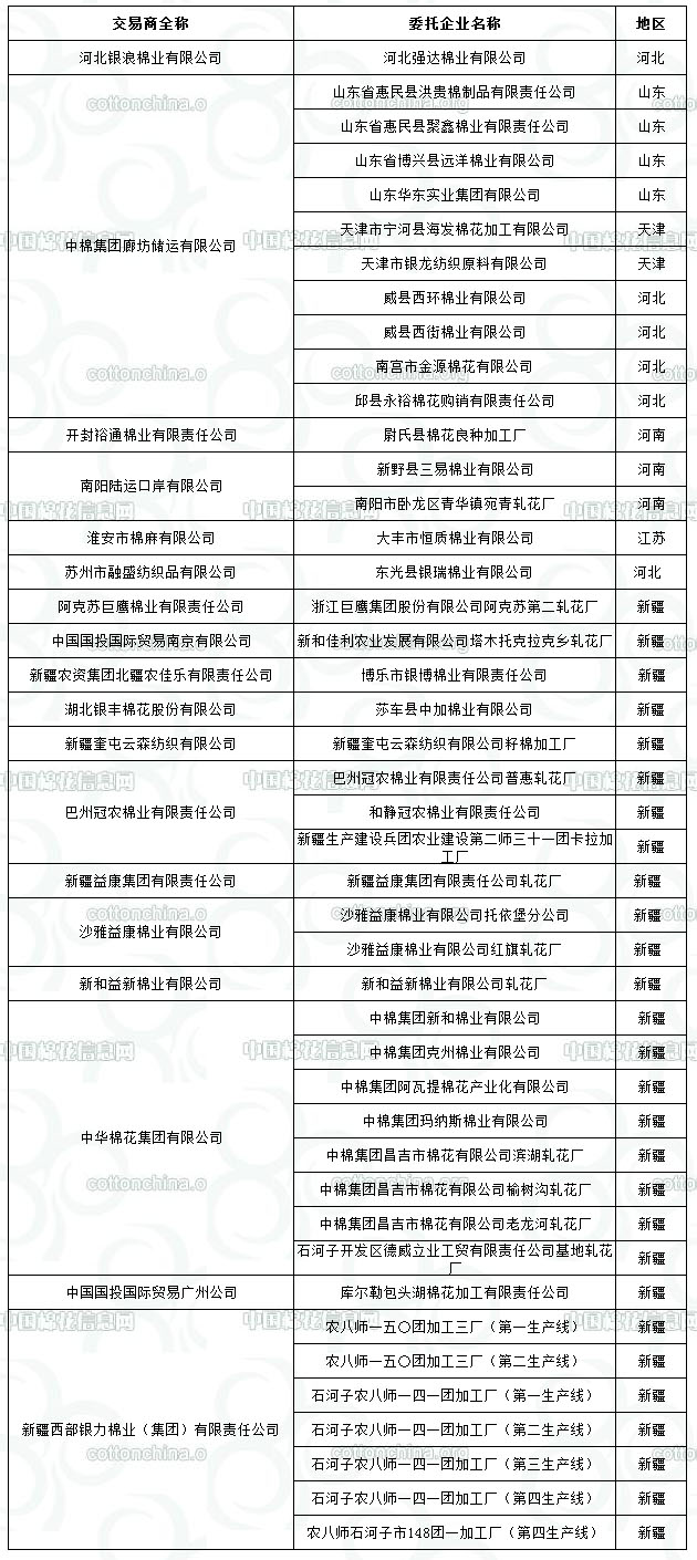 2012年度棉花臨時收儲已審核租賃、委托加工企業(yè)名單(第十一批)