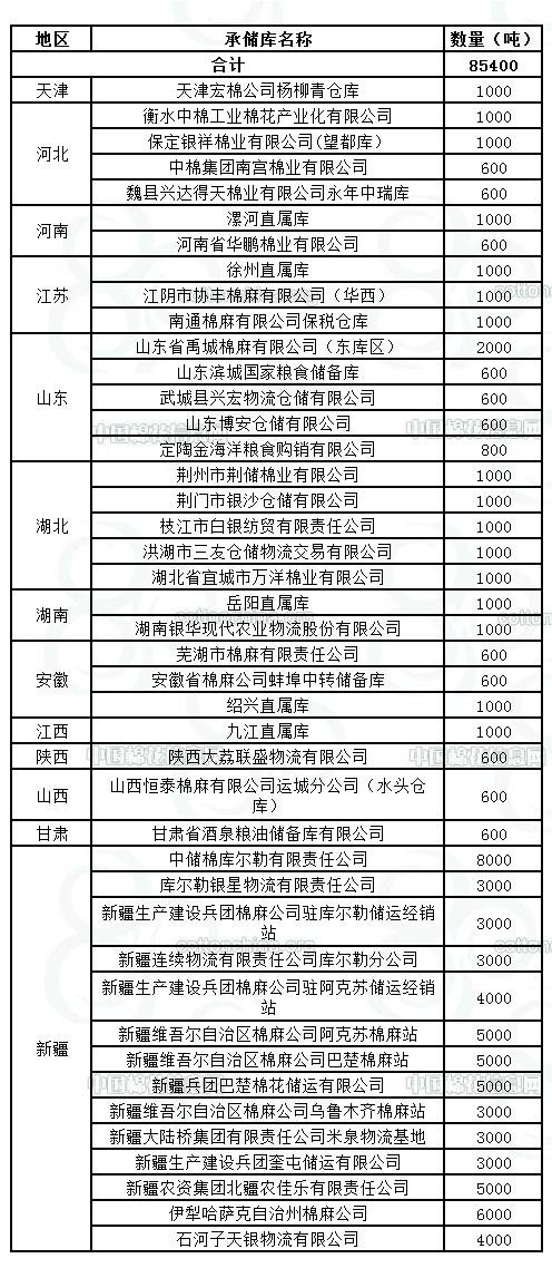 錦橋紡織網(wǎng)—資訊頻道> 棉花信息> 收儲(chǔ)>正文 9月28日收儲(chǔ)預(yù)告:計(jì)劃收儲(chǔ)85400噸