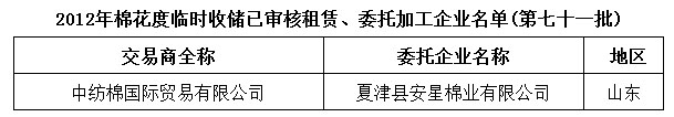 2012年度棉花臨時(shí)收儲(chǔ)已審核租賃、委托加工企業(yè)名單(第七十一批)