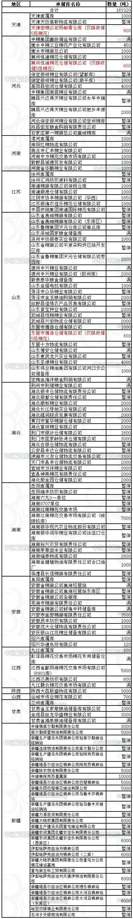 錦橋紡織網(wǎng)—資訊頻道> 棉花信息> 收儲>正文 1月30日收儲預(yù)告:計劃收儲163320噸